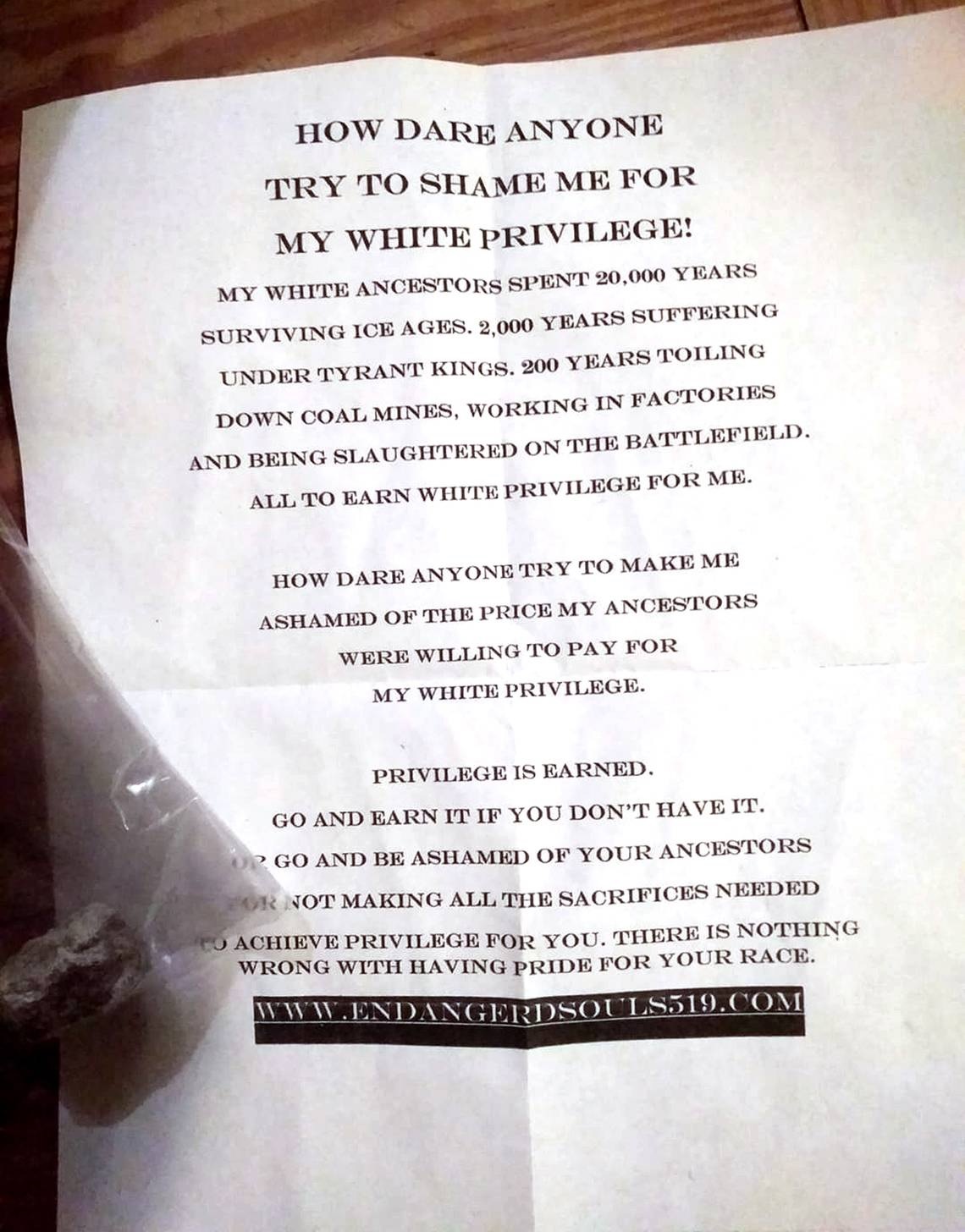 An incident involving a white supremacist group in Brandeton this July looks very much like a racist intimidation attempt. Did anything come of it?