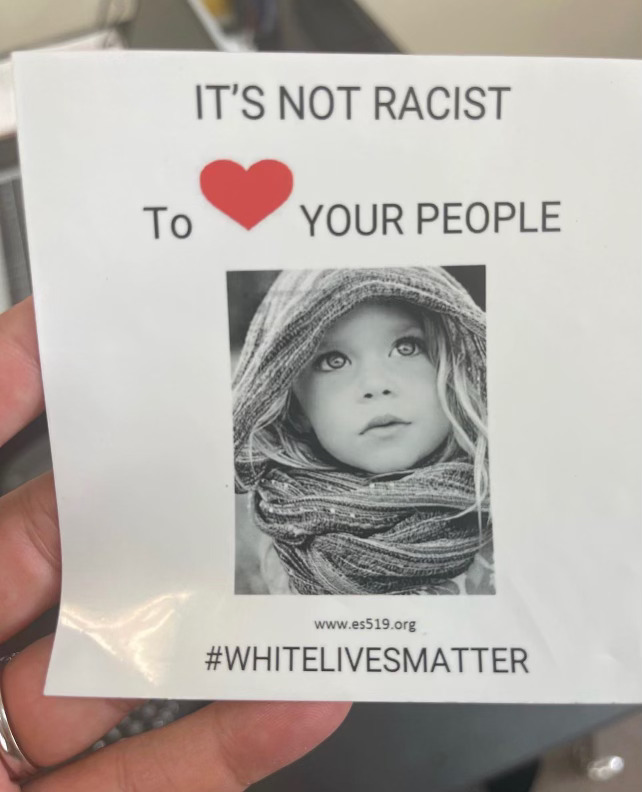This is not the first action involving Endangered Souls. In November 2019, someone distributed flyers at the Village of Arts, three miles from Orange Blossom Plaza. Those fliers, weighed down with rocks, cited the same club and white pride rhetoric. Now the perpetrators have been at the plaza multiple times, placing stickers. They have apparently not been identified.