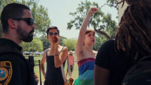 HH: Sure. I guess I just add that I spent a few days just now with Joshua at the True/False Film Festival, which was amazing. We screened in front of three audiences, about 300 people, then 330 people, then 1,200 people, and each time got standing ovations, or two standing ovations, which was just incredible. I got to meet Joshua and his best friend Calypso. I’d met them virtually, but he’s just a really great guy. Really smart. Speaks Latin and Greek. We geeked out talking about Plato’s Republic and The Symposium, and the PHUs, and what he’s writing his thesis on. I just found him to be a very open-minded and wonderful person. I don’t know all of the nuances of his transformation, but I think the big thing that really stuck with me was that he had been taught to sort of demonize people, and New College disabused him of that. He became friends with these people who are often portrayed as the enemy, the people who were destroying the culture. Queer people, trans people, free-spirited, freethinking people who are characteristic of New College for its whole history. So he’s on a journey as we all are, and it’s just really great to see him flowering, and I’m excited to see what films he makes.
