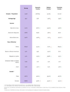 JW: This time around, the exercise began with focus groups to come up with the best way to reach hard-to-reach residents and what to ask them. It also ended with focus groups, elaborating on the results. In between, the pollsters mobilized 1,500 respondents in Sarasota, Charlotte and DeSoto counties, up seven times from the last survey. That’s a representative sample, although—the foundation concedes—there’s overrepresentation of respondents in Sarasota and underrepresentation of Hispanics.