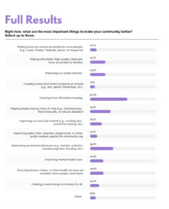 EM: The fact that that popped up in the top three, I think, shows a strong sense of responsibility for neighbors facing homelessness, food insecurity and disaster recovery.