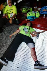 RL: Vicky Hall was among the several hundred ‘victim’ volunteers who were happy to help out.