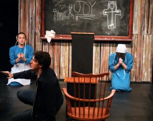 Murray Chase: That’s 70 minutes. No intermission. There’s no place to stop the show. Again, it’s only 70 minutes long. There are things that we encounter, and I think we need to look at the reasons—how they affect us. It’s a strong play about a tough thing, but they need to be looked at. Think about it. Almost every day in our world—in our country, not our world—in our country—there are children killed in school. Are we just looking the other way? Are we okay with that? Are we willing to look at it and go, “This should not happen.” Parents today dropping their kids off at school have to wonder if they’re going to see their kids again.