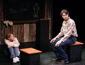Zach Tudor plays eddie stuckey, the gunman of 2006 Amish schoolhouse shooting in Nickel Mines, PA. Megan Hendrick is his wife, Carol Stuckey. Photos by Ramon Lopez